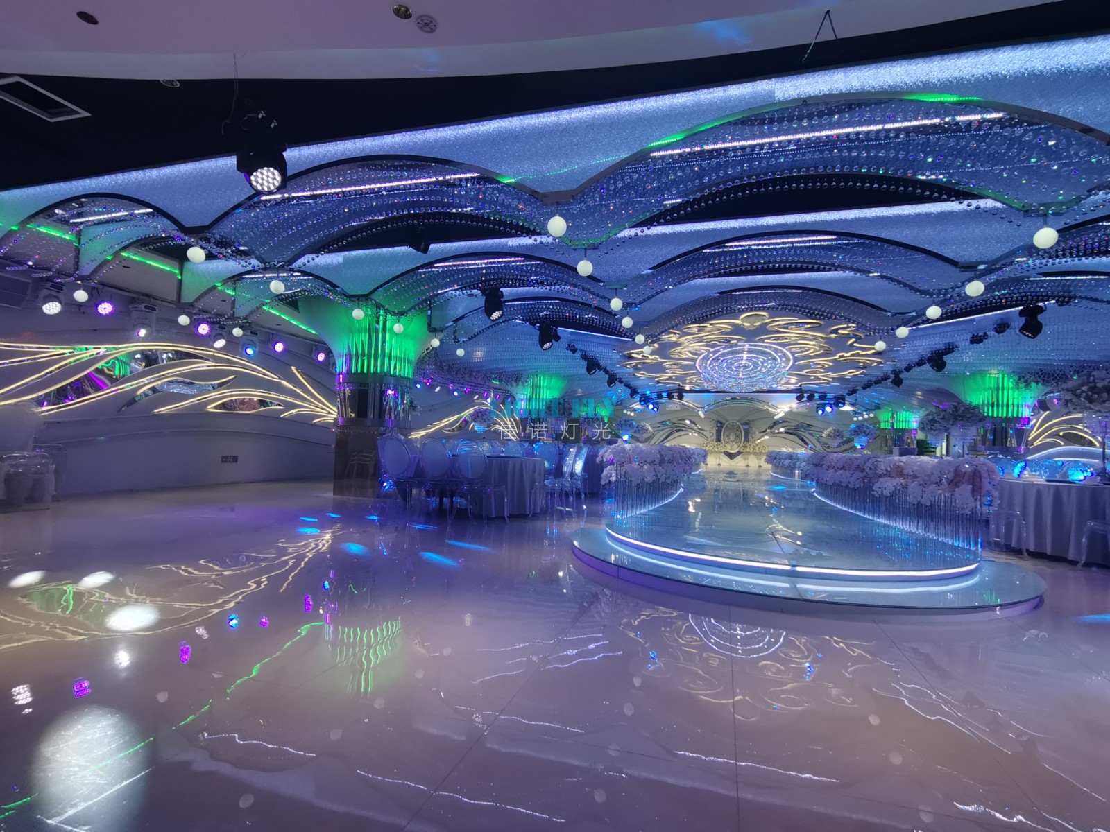 三個宴會廳分別為水晶燈光宴會廳,時光燈光宴會廳,錦熙燈光宴會廳,每個宴會廳燈光都由佳諾燈光設(shè)計師設(shè)計水晶廳以水晶燈為主,LED染色帕燈為輔配合LED面光燈實現(xiàn)七彩換色與色溫切換,380W白色光束燈實現(xiàn)整個宴會廳光束與棱鏡效果。時光廳增加了LED全彩升降球燈色彩實現(xiàn)七彩升降球動感升降效果,讓宴會廳更加多姿做菜,錦熙宴會廳燈光用380W圖案燈配合光束燈實現(xiàn)圖案與光束的變換,配合一體智能燈光控制實現(xiàn)美輪美奐宴會廳燈光秀。